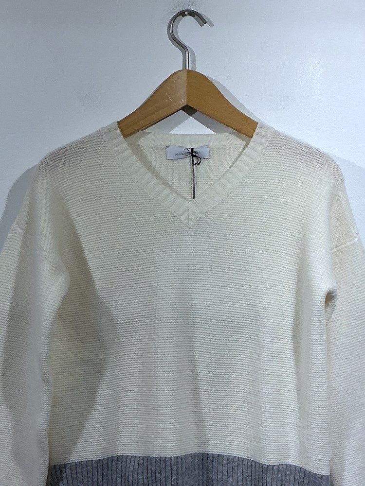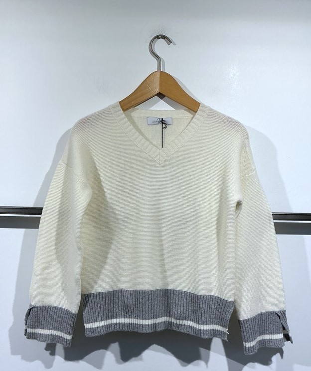 Anna Seravalli – Linksstrick-Pulli mit farbig abgesetzten Bündchen