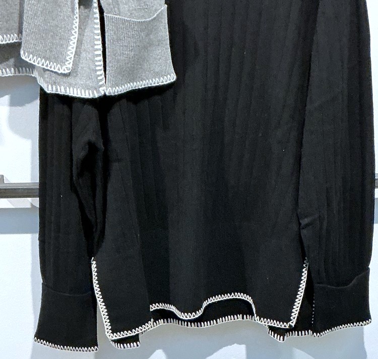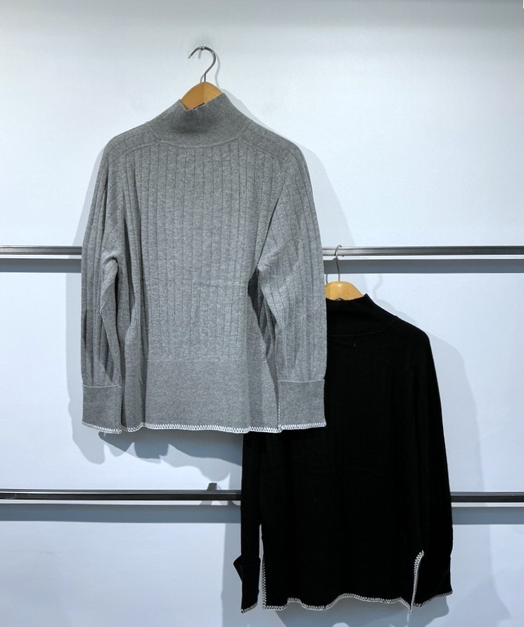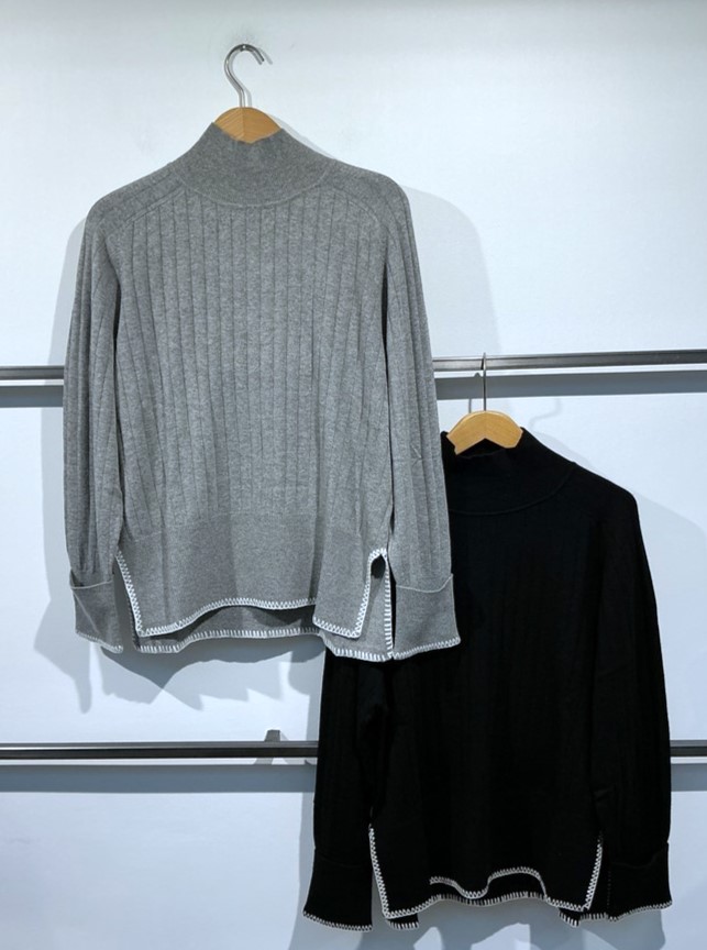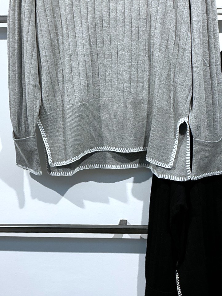 • Feiner Rippenstrick an Saum und Ärmeln