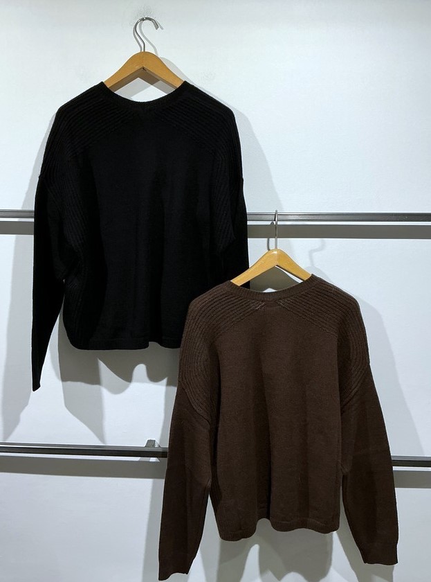 • Bündchen an Hals, Taschen, Saum und Ärmel in Rippenstrick