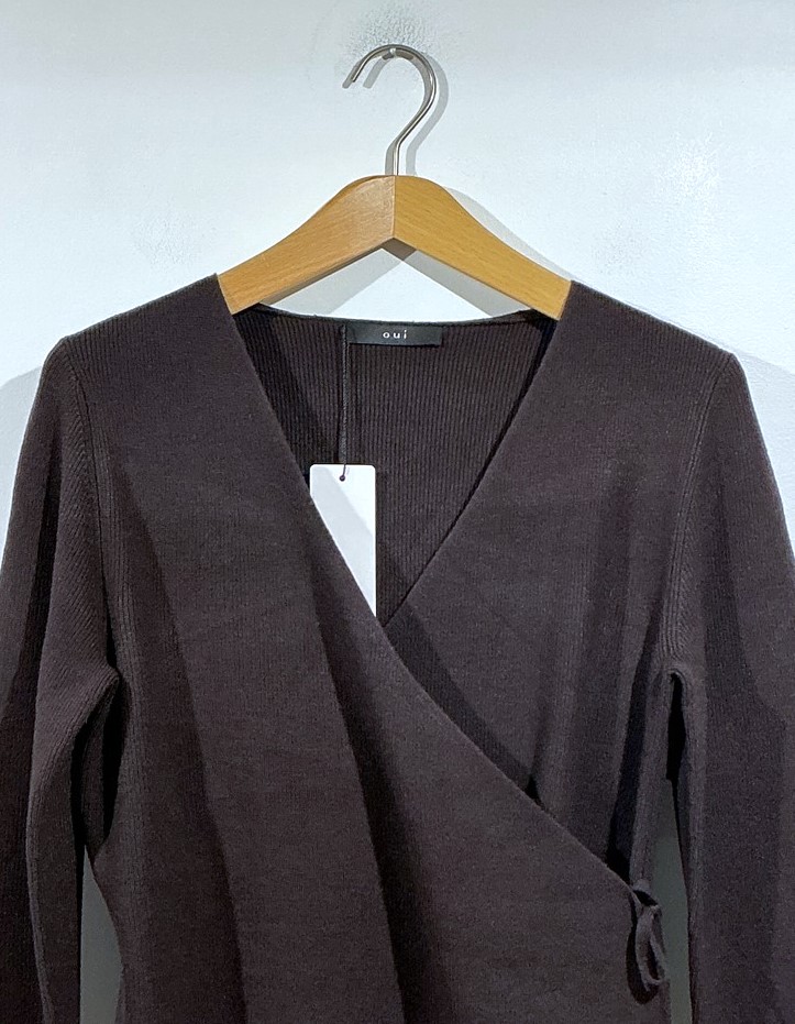 Oui – Strickjacke mit seitlilchem Bindeband und V-Ausschnitt